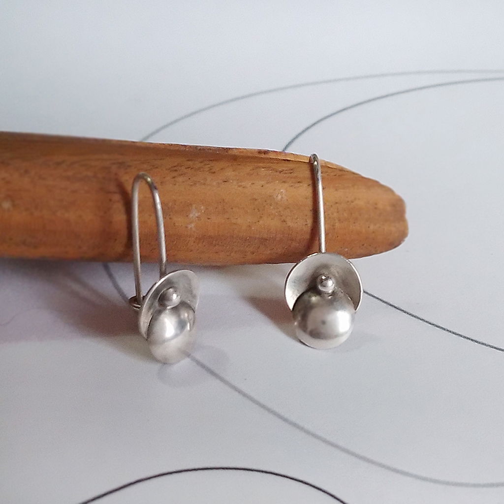 Aros de plata artesanales y originales con cierre seguro trasero, realizados en un calibre ideal para que no se deforme con el uso. Cóncavo y Convexo con domo en el centro, lo pensé representando a una en el mundo. Hay quienes que ven a una dama antigua en su figura, y así los titulé...
