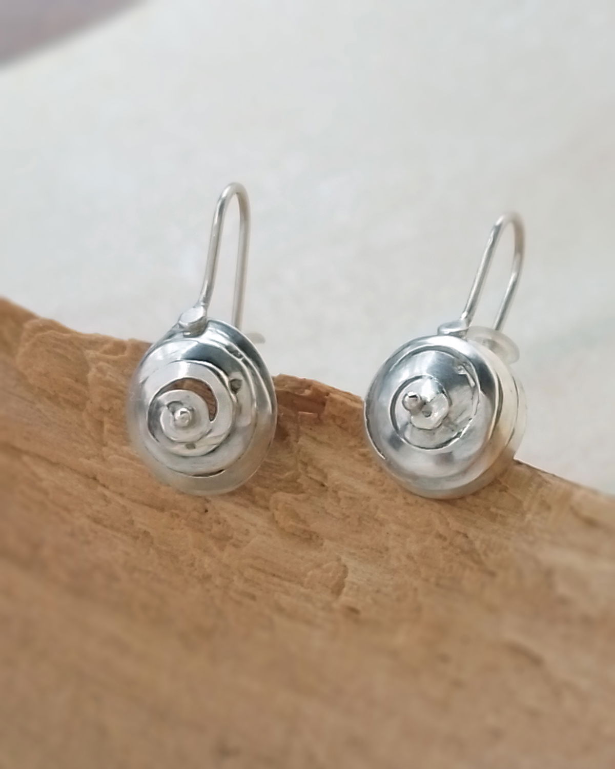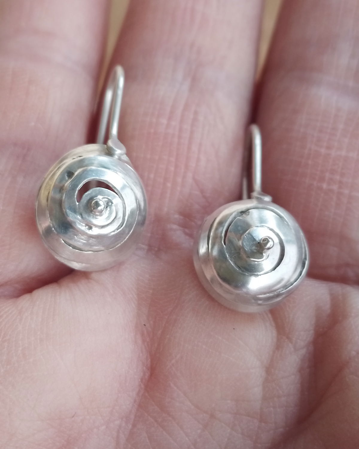 Aros de plata hecho a mano y originales con pasantes realizados en un calibre ideal para que no se deformen con el uso.