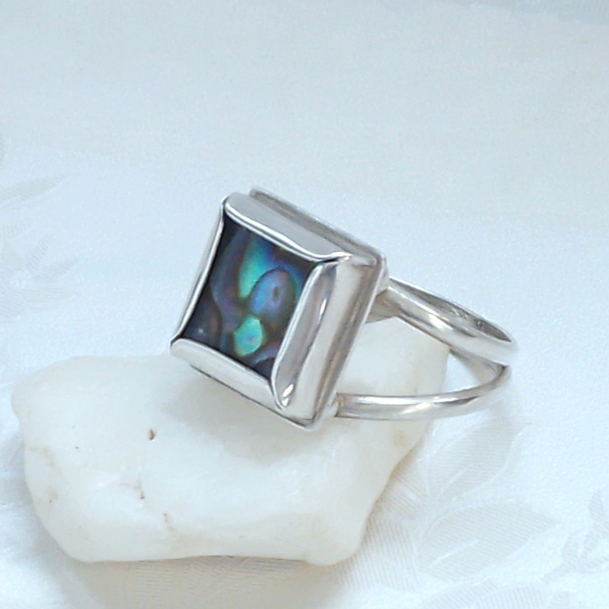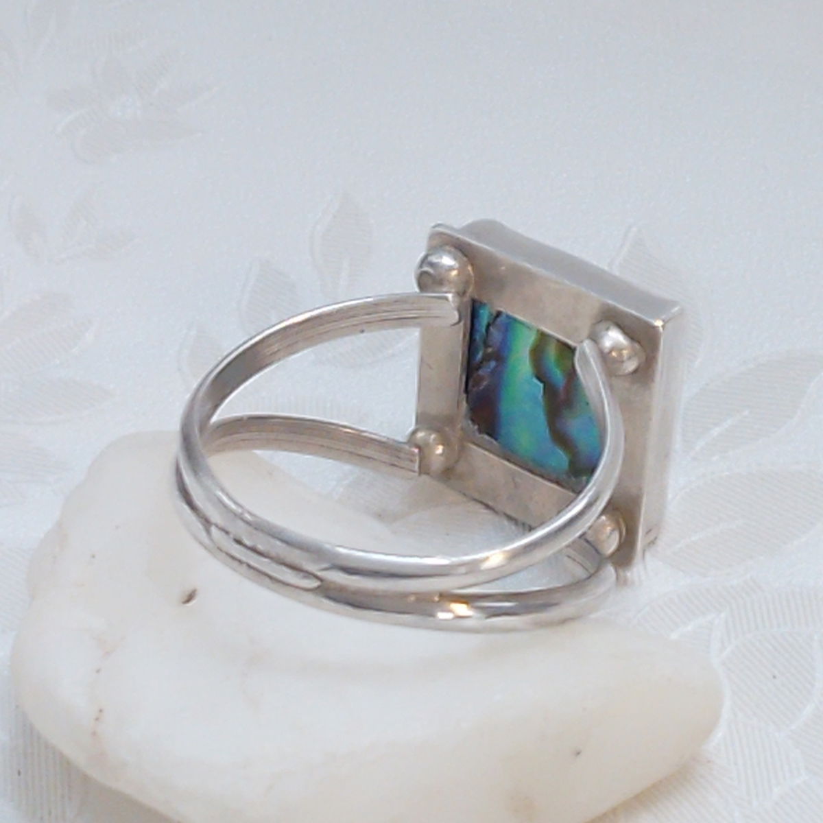 Anillo de Plata 925 y Aleotis, la conoces? No es piedra, es caracola... y este anillo de diseño propio tiene 4 domos (bolitas de plata) que elevan la forma dándole su importancia merecida... conciso...