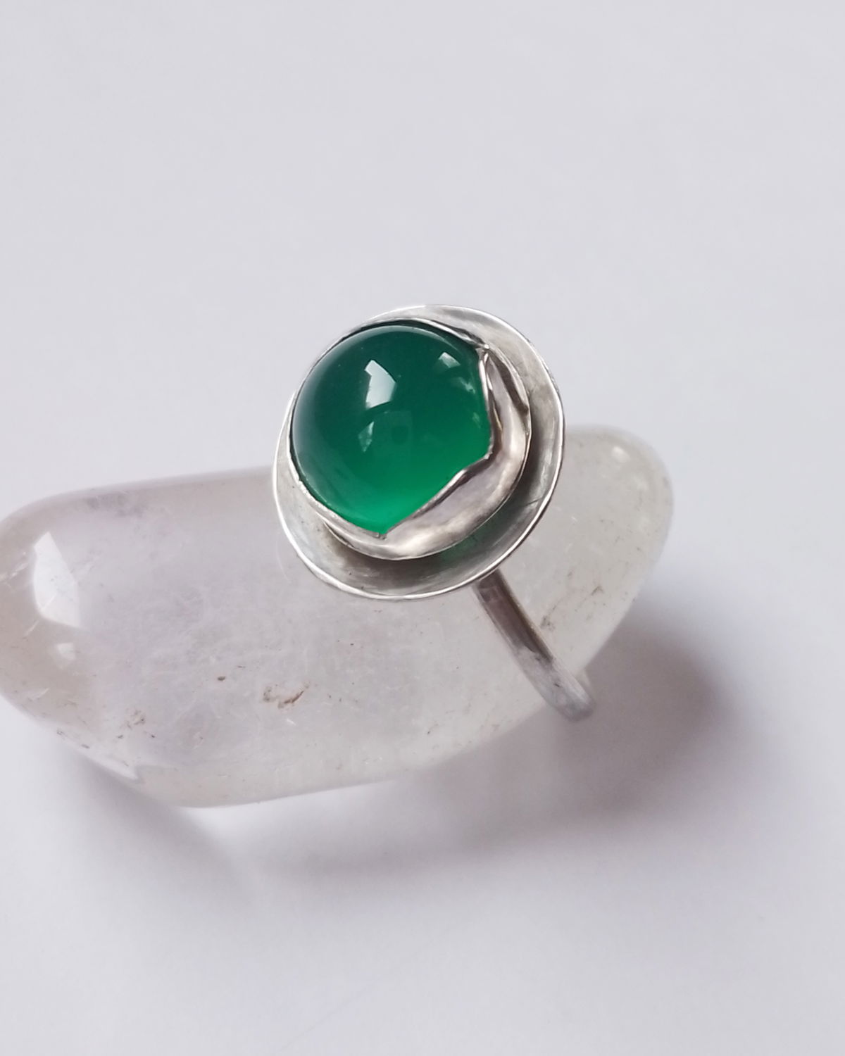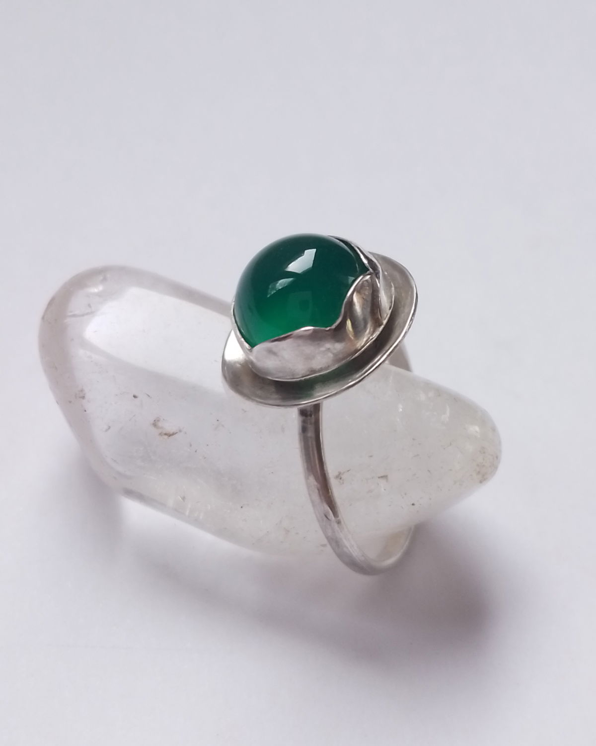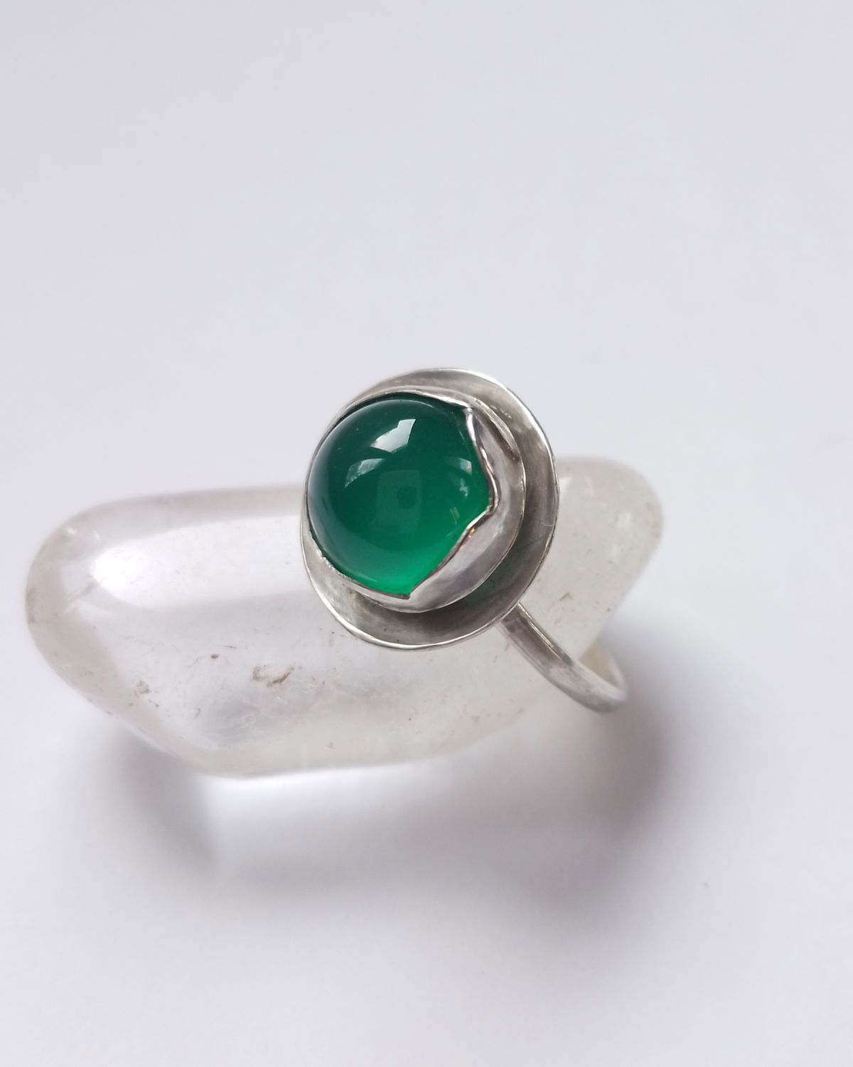 Anillo de Plata 925 con piedra Domo FLor Onix Verde. Joyería de autora, diseños exclusivos, hechos a mano artesanalmente.
