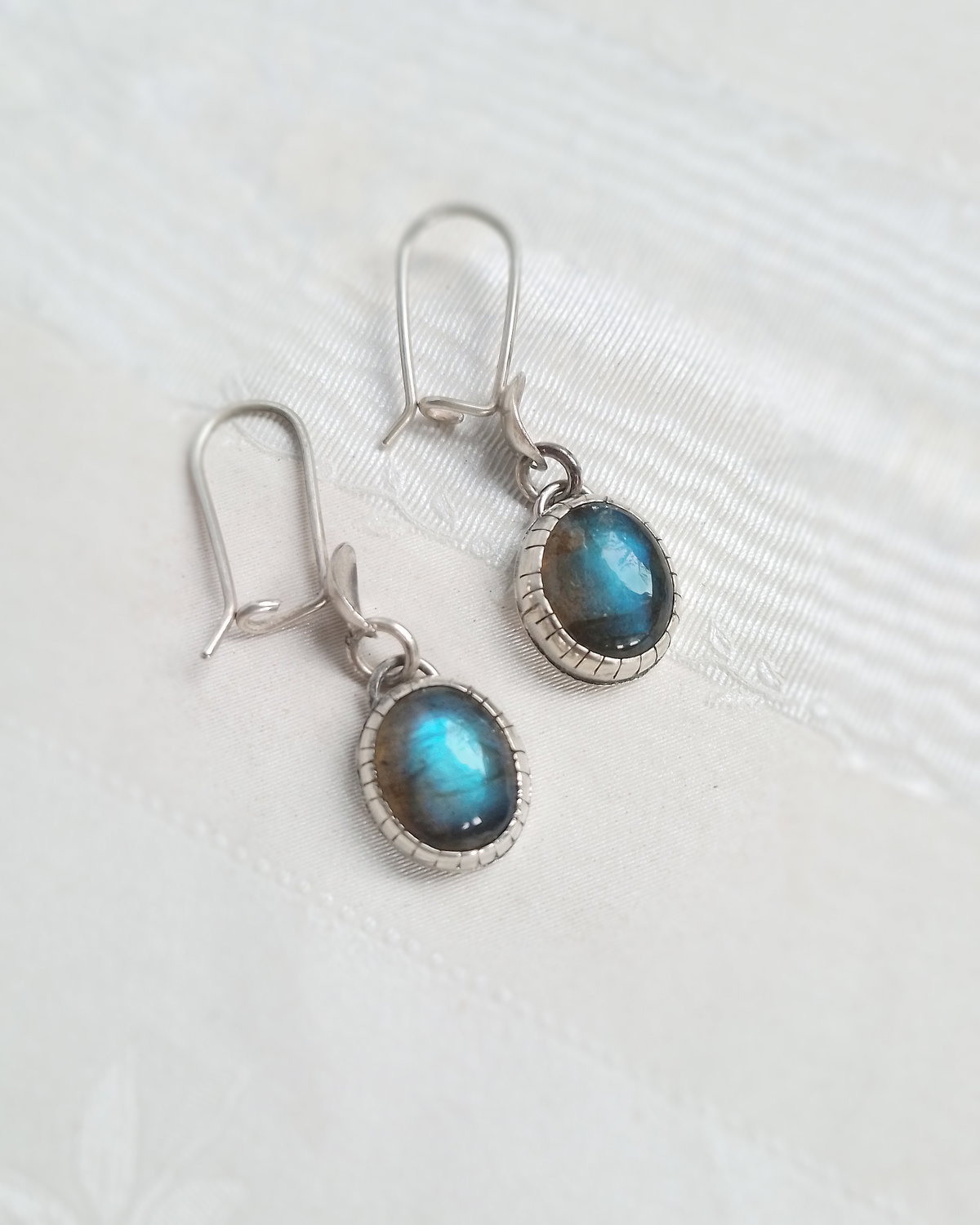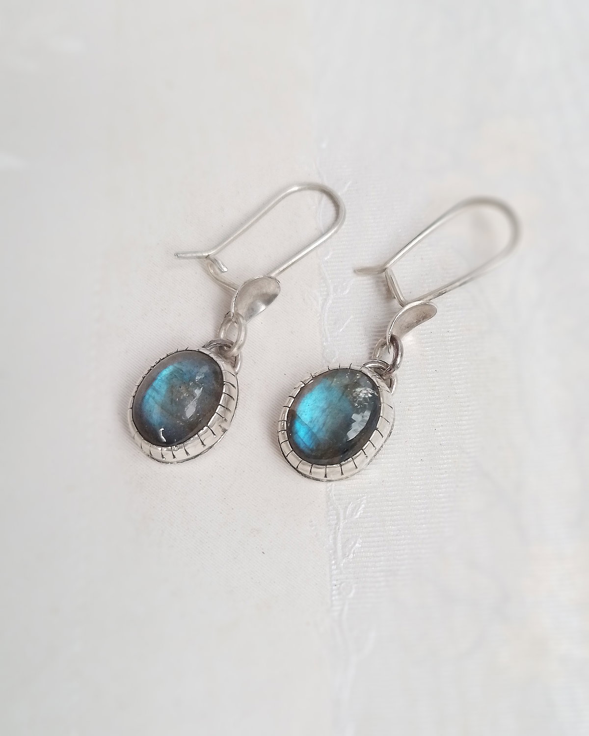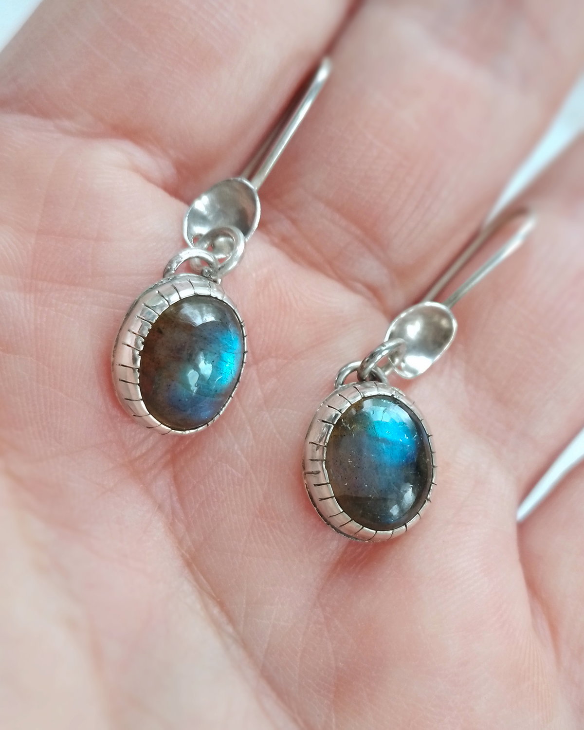 Estos aros son de Plata 925 y las piedras naturales se llaman Labradoritas...